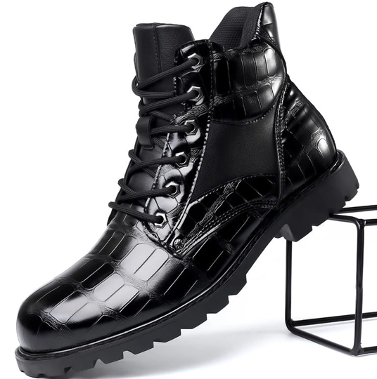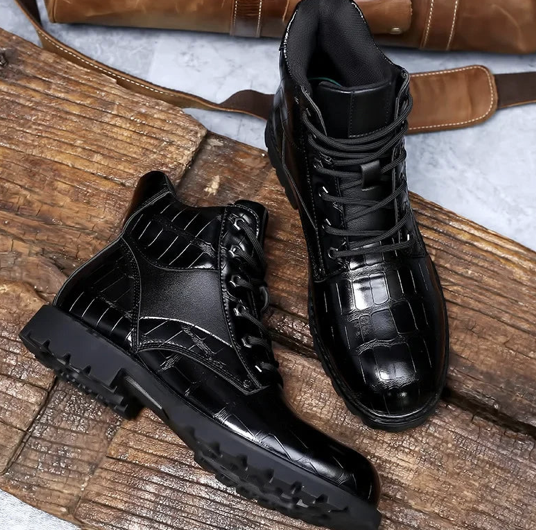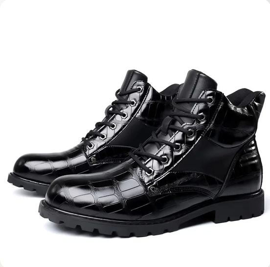 Step into sophistication with the Dante Leandro Leather Boots, designed to bring luxury and distinction to any ensemble. Crafted from premium croc-embossed leather, these boots offer unmatched durability and style, making them the ultimate choice for those who seek a refined edge.